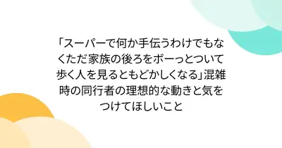 「スーパーで何か手伝うわけでもなくただ家族の後ろをボーっとついて歩く人を見るともどかしくなる」混雑時の同行者の理想的な動きと気をつけてほしいこと