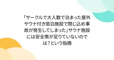 「サークルで大人数で泊まった屋外サウナ付き宿泊施設で閉じ込め事故が発生してしまった」サウナ施設には安全策が足りていないのでは?という指摘