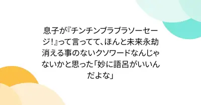 息子が『チンチンブラブラソーセージ!』って言ってて、ほんと未来永劫消える事のないクソワードなんじゃないかと思った「妙に語呂がいいんだよな」
