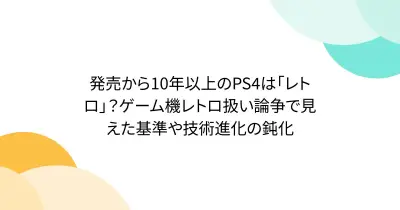 発売から10年以上のPS4は「レトロ」?ゲーム機レトロ扱い論争で見えた基準や技術進化の鈍化