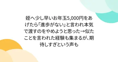 姪へ少し早いお年玉5,000円をあげたら「進歩がない」と言われ本気で渡すのをやめようと思った→似たことを言われた経験も集まるが、期待しすぎという声も