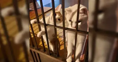 先輩アニマルに育てられた結果、絶対に通れる隙間を通れないと思い込んだ猫が無事に誕生した「こうして歴史は続くのか」
