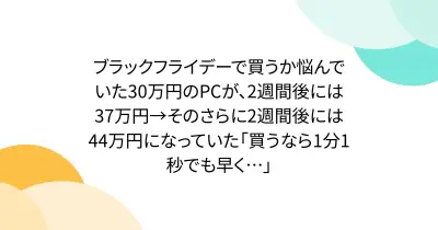 ブラックフライデーで買うか悩んでいた30万円のPCが、2週間後には37万円→そのさらに2週間後には44万円になっていた「買うなら1分1秒でも早く…」