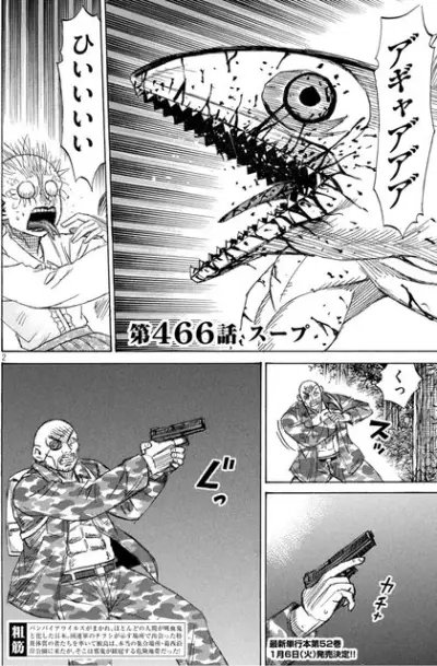 今週の彼岸島、バイオハザードレベルの戦闘シーンを載せる