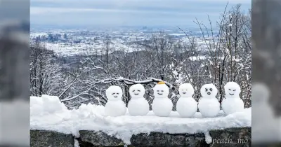 高尾山の山頂で雪だるまを作った人へ『とても良かったで賞』をさしあげます「表情がみんな違ってて可愛い」