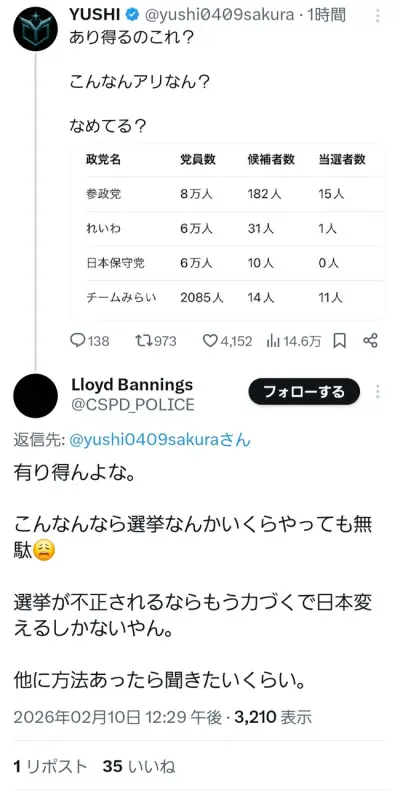 【悲報】陰謀論者「選挙が不正されるならもう力づくで日本を変えるしかない」