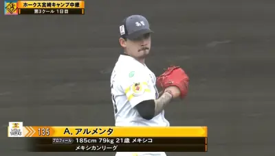 ホークス・アルメンタ、ライブBPで5人の打者を完璧に抑える