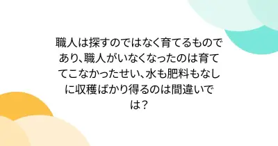 職人は探すのではなく育てるものであり、職人がいなくなったのは育ててこなかったせい、水も肥料もなしに収穫ばかり得るのは間違いでは?