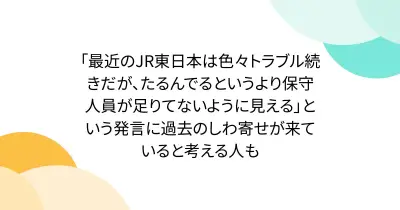 「最近のJR東日本は色々トラブル続きだが、たるんでるというより保守人員が足りてないように見える」という発言に過去のしわ寄せが来ていると考える人も