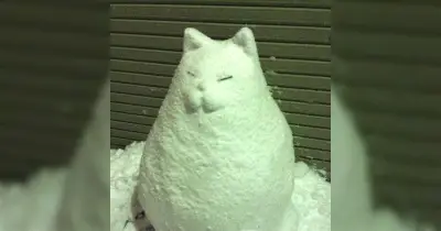 藝大生が住んでいる地域では雪が降るとこんな見事な雪だるまが現れる「雪猫 !?」「クオリティが高すぎるw」