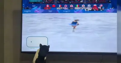 五輪のフィギュアスケート、猫が喜ぶ動画付きになってて猫さんたちが釘付けになってる「リンクのどの部分で滑ってるかわかるんだ!」「後ろに回ってみるのかわいい」