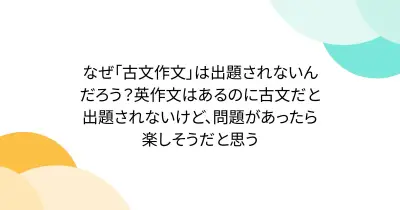なぜ「古文作文」は出題されないんだろう?英作文はあるのに古文だと出題されないけど、問題があったら楽しそうだと思う