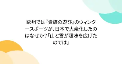 欧州では『貴族の遊び』のウィンタースポーツが、日本で大衆化したのはなぜか?「山と雪が趣味を広げたのでは」