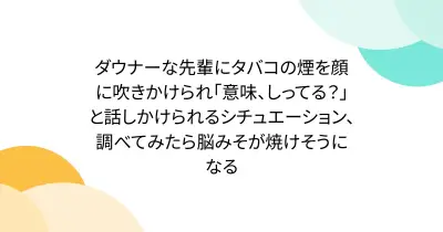 ダウナーな先輩にタバコの煙を顔に吹きかけられ「意味、しってる?」と話しかけられるシチュエーション、調べてみたら脳みそが焼けそうになる