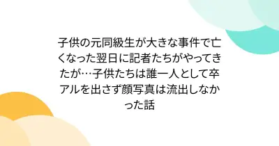 子供の元同級生が大きな事件で亡くなった翌日に記者たちがやってきたが…子供たちは誰一人として卒アルを出さず顔写真は流出しなかった話