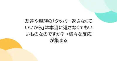 友達や親族の「タッパー返さなくていいから」は本当に返さなくてもいいものなのですか?→様々な反応が集まる
