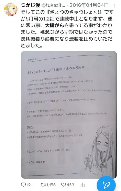 【悲報】マンガ家「運動したらお腹に違和感……27歳やし大丈夫!」→大腸がんステージ4で死亡