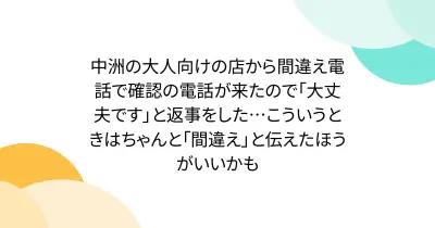 中洲の大人向けの店から間違え電話で確認の電話が来たので「大丈夫です」と返事をした…こういうときはちゃんと「間違え」と伝えたほうがいいかも