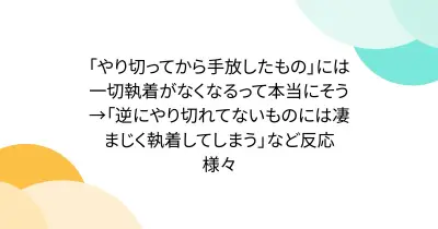 「やり切ってから手放したもの」には一切執着がなくなるって本当にそう→「逆にやり切れてないものには凄まじく執着してしまう」など反応様々