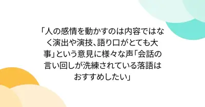 「人の感情を動かすのは内容ではなく演出や演技、語り口がとても大事」という意見に様々な声「会話の言い回しが洗練されている落語はおすすめしたい」