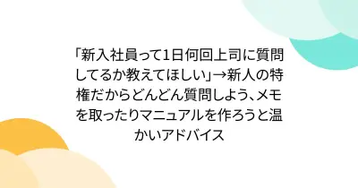 「新入社員って1日何回上司に質問してるか教えてほしい」→新人の特権だからどんどん質問しよう、メモを取ったりマニュアルを作ろうと温かいアドバイス