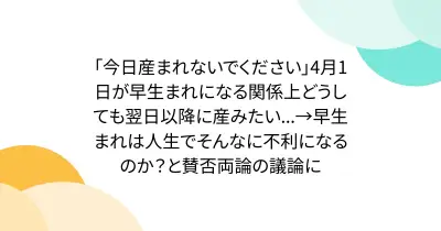 「今日産まれないでください」4月1日が早生まれになる関係上どうしても翌日以降に産みたい...→早生まれは人生でそんなに不利になるのか?と賛否両論の議論に