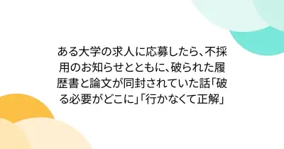 ある大学の求人に応募したら、不採用のお知らせとともに、破られた履歴書と論文が同封されていた話「破る必要がどこに」「行かなくて正解」