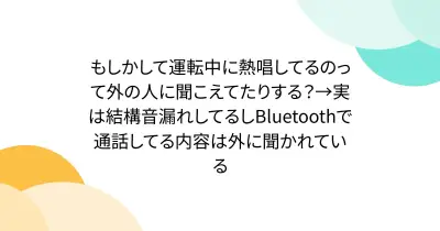 もしかして運転中に熱唱してるのって外の人に聞こえてたりする?→実は結構音漏れしてるしBluetoothで通話してる内容は外に聞かれている