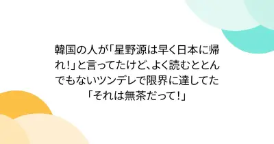 韓国の人が「星野源は早く日本に帰れ!」と言ってたけど、よく読むととんでもないツンデレで限界に達してた「それは無茶だって!」