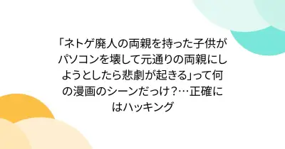 「ネトゲ廃人の両親を持った子供がパソコンを壊して元通りの両親にしようとしたら悲劇が起きる」って何の漫画のシーンだっけ?…正確にはハッキング