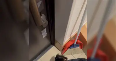 準備万端なお散歩装備だったのに、玄関が開いた瞬間に「あー…今日はいいや」ってなる雪の日の犬動画