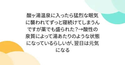 酸ヶ湯温泉に入ったら猛烈な眠気に襲われてずっと寝続けてしまうんですが薬でも盛られた?→酸性の泉質によって湯あたりのような状態になっているらしいが、翌日は元気になる