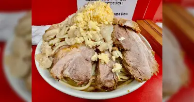 「ここまでデカ盛りのヤサイ抜きは初めて」ラーメン二郎の神田神保町店で残してしまった人が写真を投稿「味がいいのと同時に一、二を争うほど量が多い」