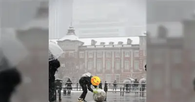 東京駅の雪景色を眺めに行ったら大きな雪だるまを作っているヒトがいた、その完成品はのちに大人気になった模様