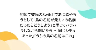 初めて彼氏のSwitchであつ森やろうとして「島の名前が元カノの名前だったらどうしよう」と思ってハラハラしながら開いたら…「同じシチュあった」「うちの島の名前はこれ」