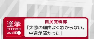 【画像】自民党幹部「大勝の理由よくわからない。中道が弱かった」