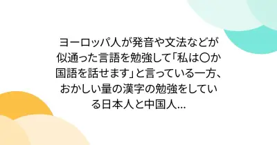 ヨーロッパ人が発音や文法などが似通った言語を勉強して「私は〇か国語を話せます」と言っている一方、おかしい量の漢字の勉強をしている日本人と中国人...