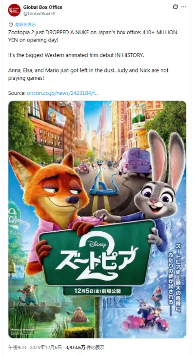 海外メディア「ズートピア2が日本で核爆弾並の大ヒット!」外国人「ええ…」