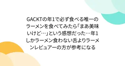 GACKTの年1で必ず食べる唯一のラーメンを食べてみたら「まあ美味いけど…」という感想だった…年1しかラーメン食わない舌よりラーメンレビュアーの方が参考になる