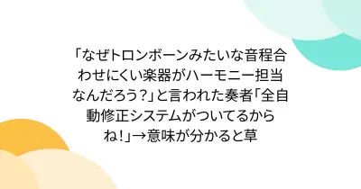 「なぜトロンボーンみたいな音程合わせにくい楽器がハーモニー担当なんだろう?」と言われた奏者「全自動修正システムがついてるからね!」→意味が分かると草