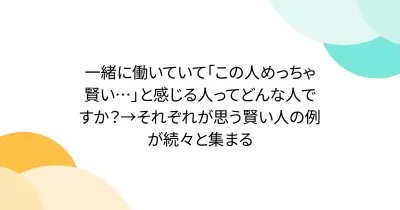 一緒に働いていて「この人めっちゃ賢い…」と感じる人ってどんな人ですか?→それぞれが思う賢い人の例が続々と集まる