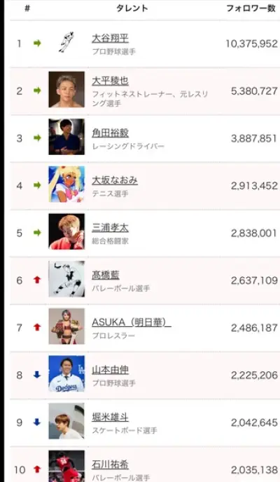 日本人スポーツ選手のインスタフォロワー数ランキング、すごいwww