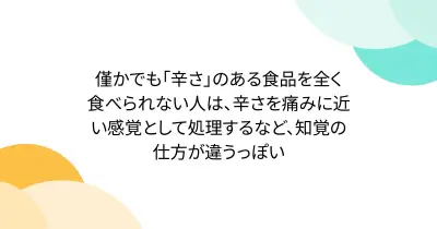 僅かでも「辛さ」のある食品を全く食べられない人は、辛さを痛みに近い感覚として処理するなど、知覚の仕方が違うっぽい
