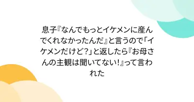 息子『なんでもっとイケメンに産んでくれなかったんだ』と言うので「イケメンだけど?」と返したら『お母さんの主観は聞いてない!』って言われた