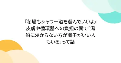『冬場もシャワー浴を選んでいいよ』皮膚や循環器への負担の面で「湯船に浸からない方が調子がいい人もいる」って話