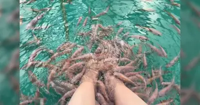 掛川花鳥園はこれが一番の隠しアトラクション「ふれあいフィッシュ」がいわゆるドクターフィッシュと違う品種なのでデカくてパワフル