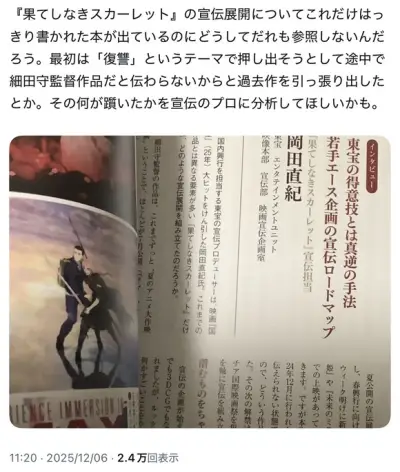 【悲報】「国宝」の広報担当さん、「果てしなきスカーレット」も担当していた