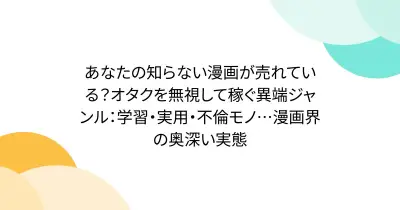 あなたの知らない漫画が売れている?オタクを無視して稼ぐ異端ジャンル:学習・実用・不倫モノ…漫画界の奥深い実態