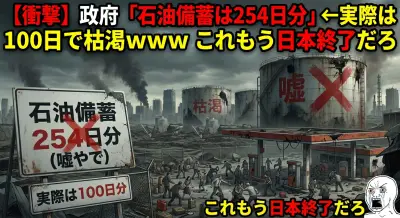 【衝撃】政府「石油備蓄は254日分ある(嘘やで)」←実際は100日で枯渇することが判明… これもう日本終了だろ