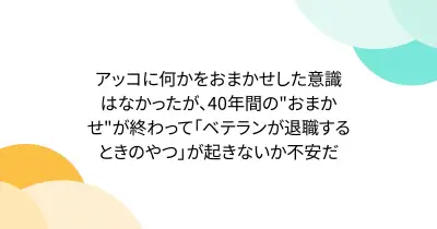 アッコに何かをおまかせした意識はなかったが、40年間の"おまかせ"が終わって「ベテランが退職するときのやつ」が起きないか不安だ